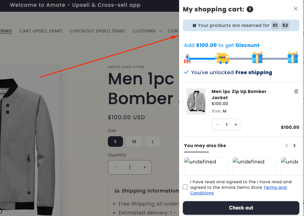 Encourage customers to add more items by showing how close they are to rewards such as free shipping or discounts.In-Cart Upsell & Cross-Sell
