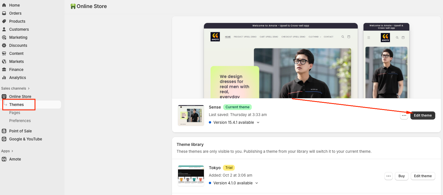 1. Check if Amote Cart Drawer is Enabled in your theme.