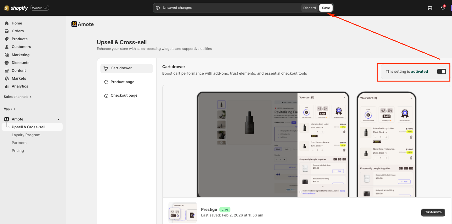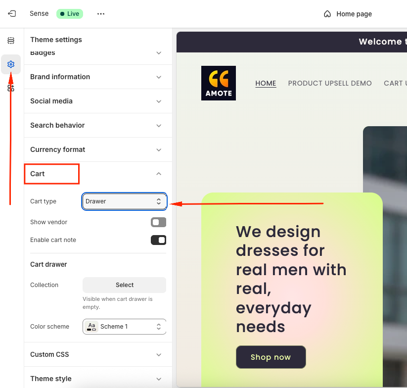 2. Activate the Cart Drawer in Amote