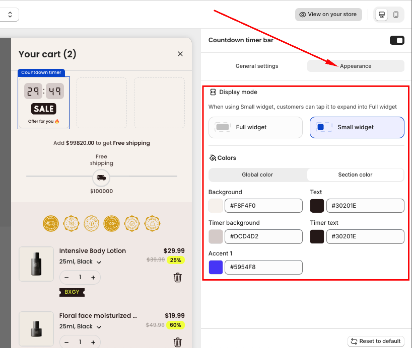 Click Save, then visit your storefront and add products to the cart to test how the Countdown Timer bar works.