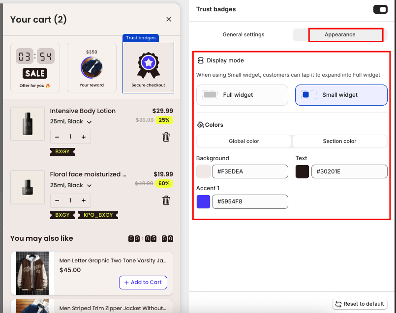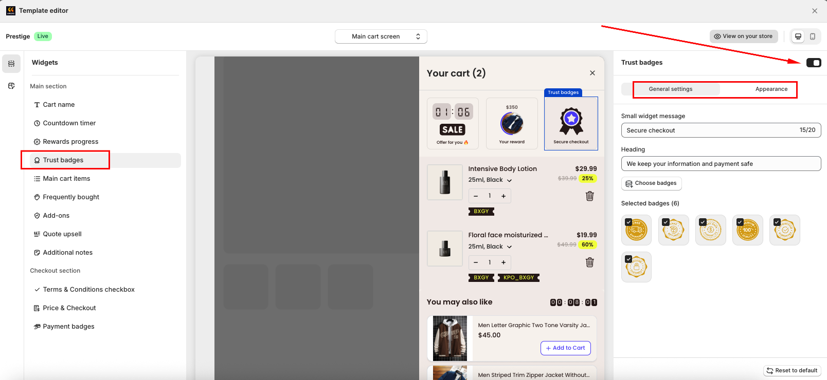 Choose badges: Select which trust badges you want to display, such as secure payment, fast shipping, or buyer protection.