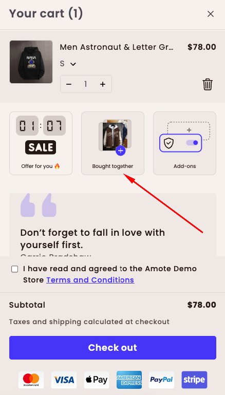 The Frequently Bought feature helps increase Average Order Value (AOV) by recommending relevant products directly inside the cart drawer. By showing items that are commonly purchased together, customers are encouraged to add more products to their cart with minimal effort.